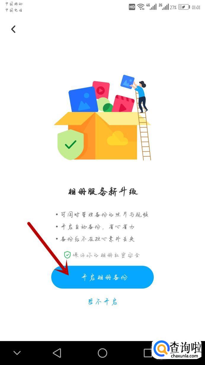 进入界面后,点击开启相册备份。