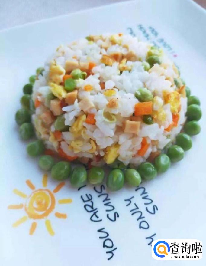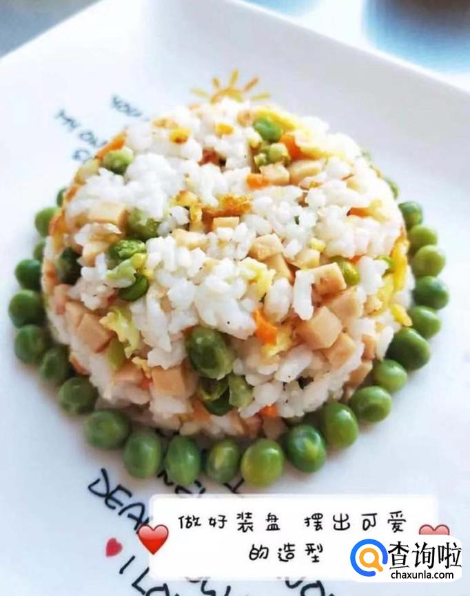 最后将豌豆凹出我们喜欢的造型就可以了。一道美味可口的豌豆胡萝卜炒饭就做好了,希望大家能够喜欢。