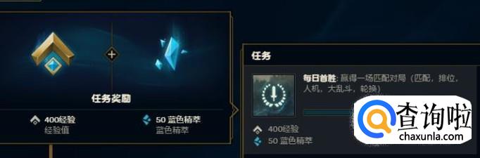 每日首胜可以获得400经验和50精粹。