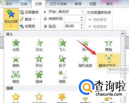 如果想把第二第三的顺序颠倒过来,对着最底下的动画“翻转式由远及近”按住不放拉动到第二个动画上面放手。这样就调整了动画播放顺序了。