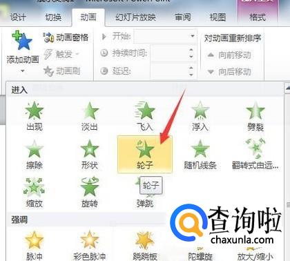 选择第一个动画轮子,继续点击添加动画,添加第二个动画飞入,继续点击,加入第三个动画翻转式由远及近。