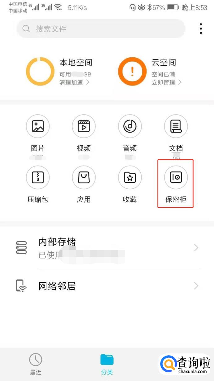 点开文件管理后,找到手机的保密柜。