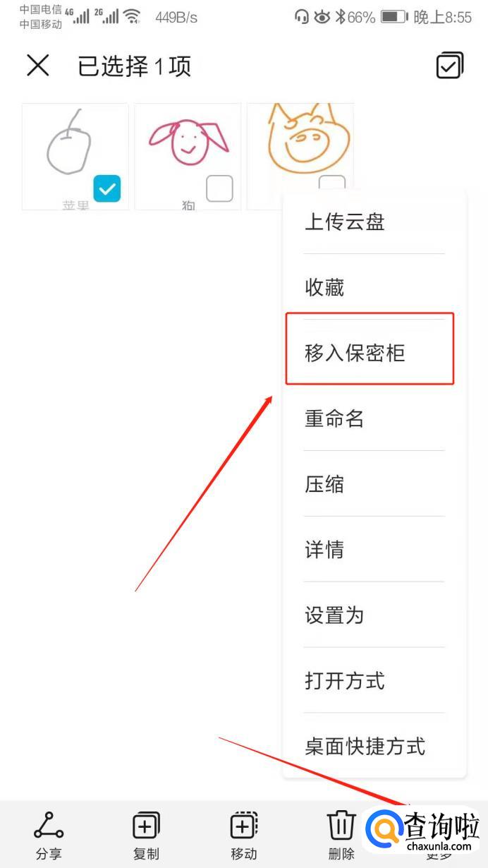 点击右下角更多,找到“移入保密柜”选项。