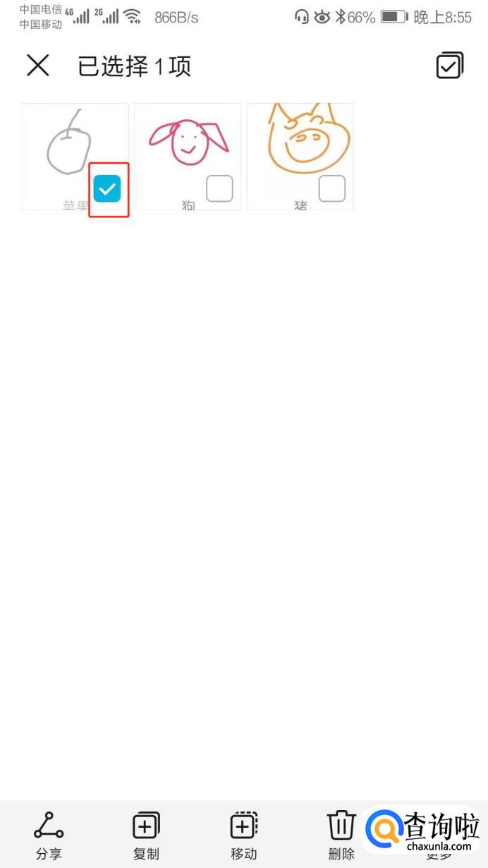 长按图片会出现如下蓝色勾选框,勾中的就是你选择了的图片。