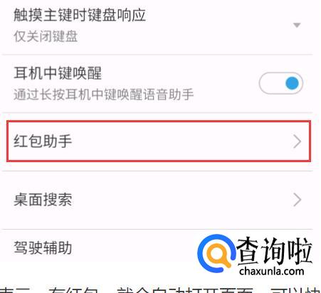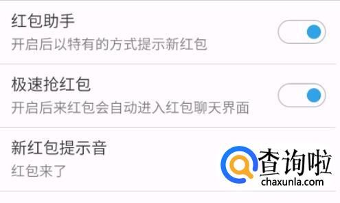 把“红包助手”和“急速抢红包都打开”这样一有红包出现系统就会自动打开页面,这样就可以快速抢到红包。