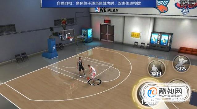 接着找到时机后快速的双击游戏页面中的【传球】按键,此时角色就会把球扔向篮板了。