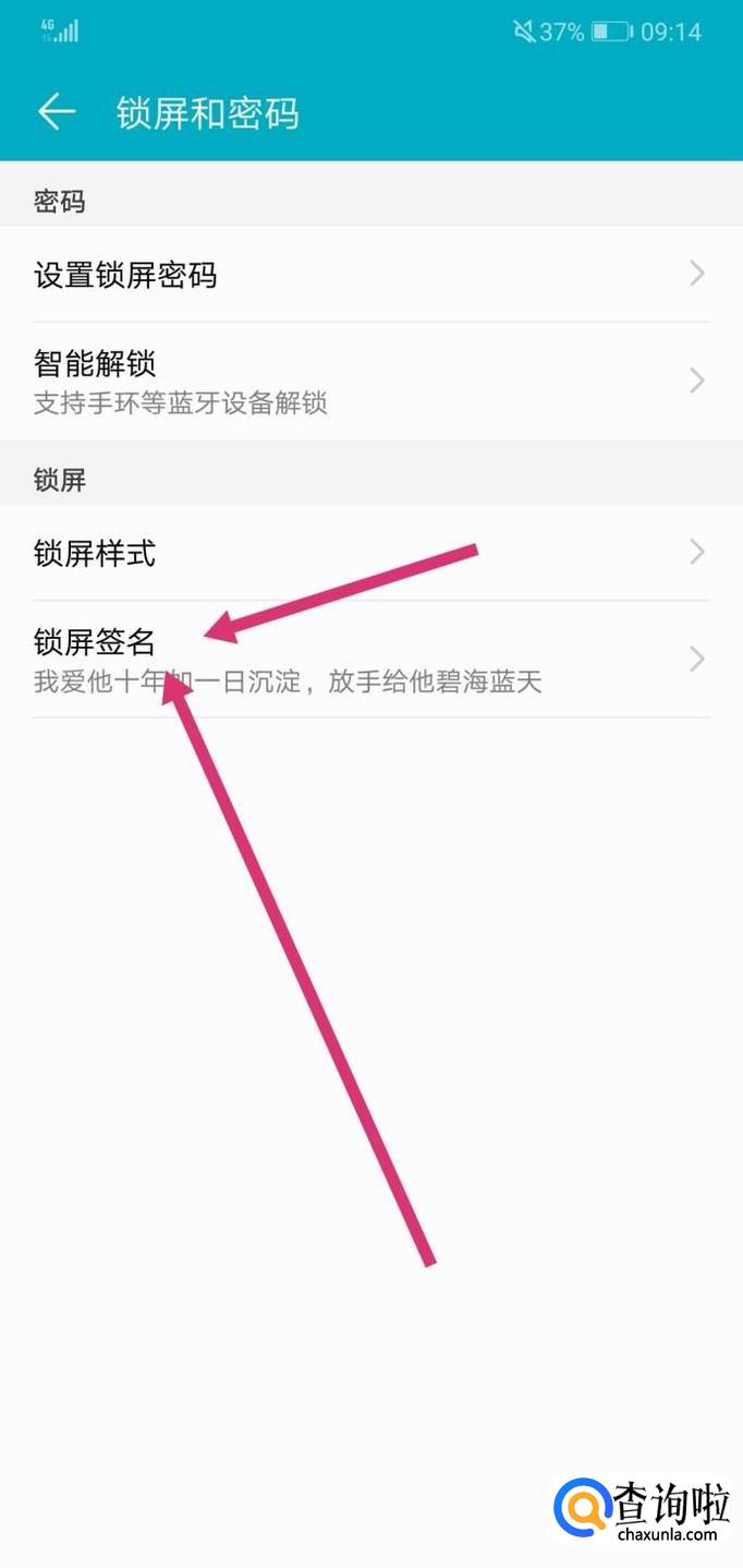 最后,进入下一个环节后你就可以看到一个写有“锁屏签名”的功能,点击它,你就可以设置你想要的签名了。