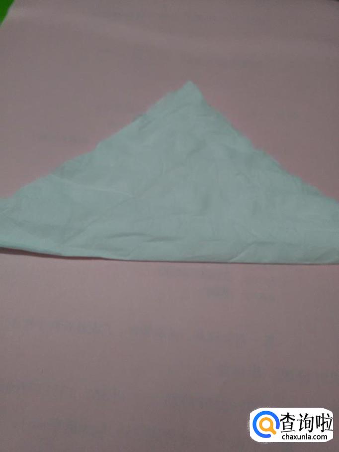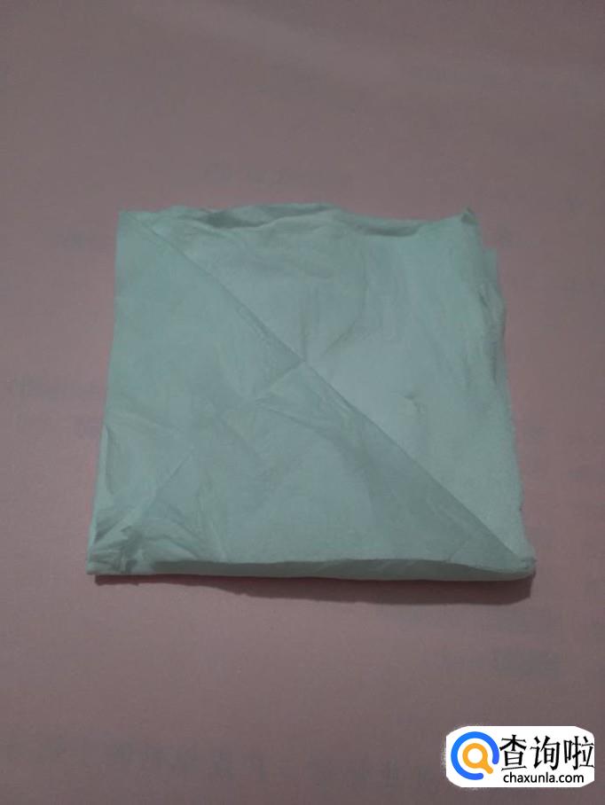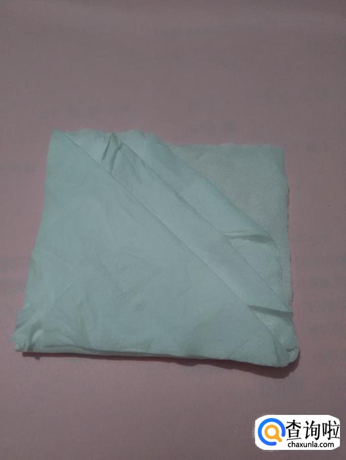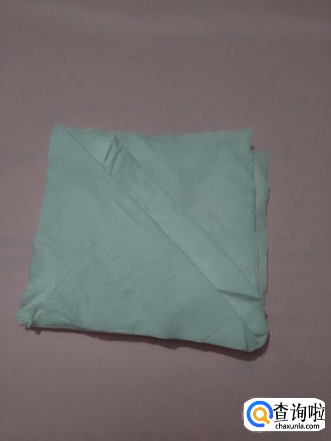 将正方形餐巾的一个角向对面对折,折成三角形。