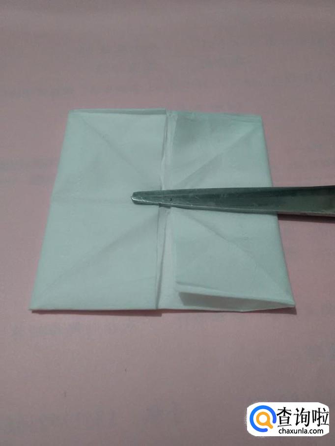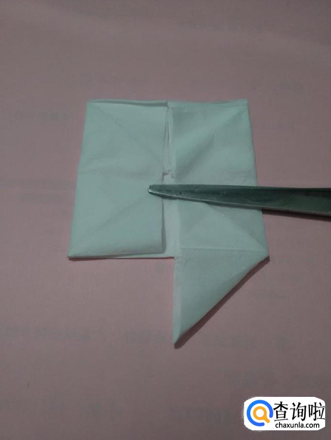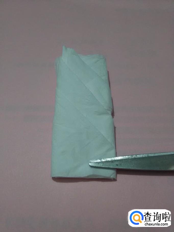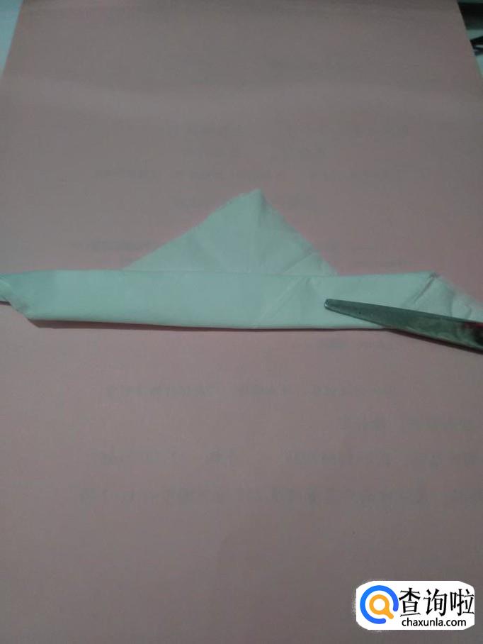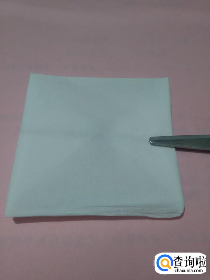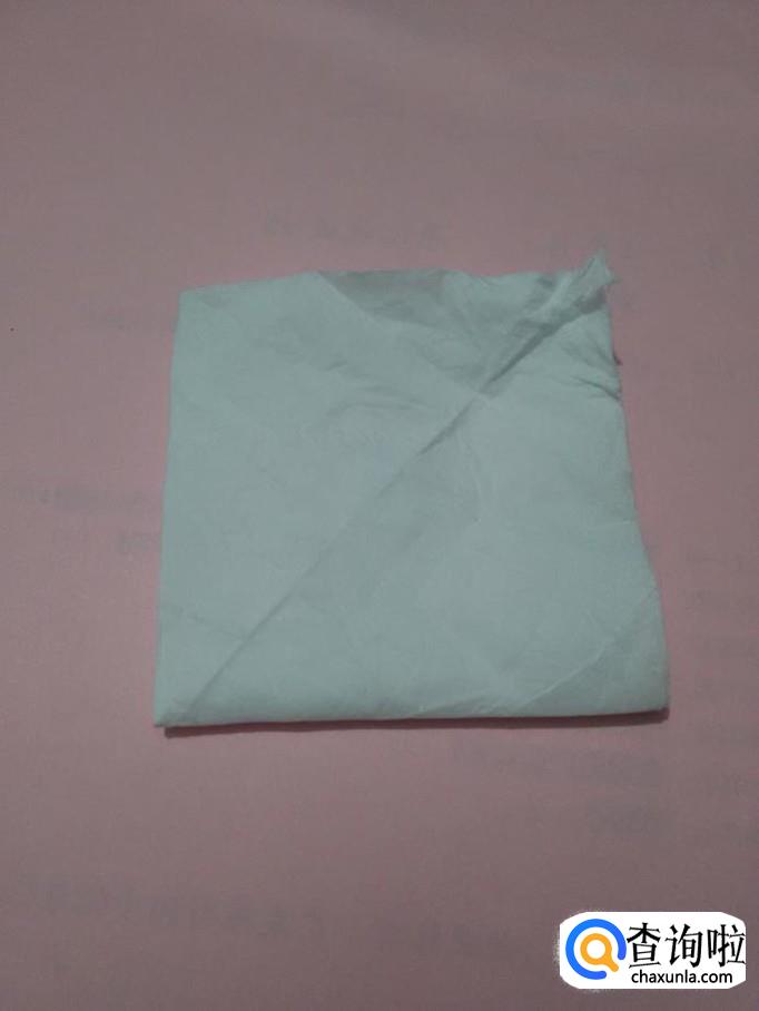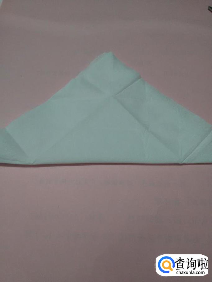 将正方形餐巾的一个角向上对折,折成三角形。