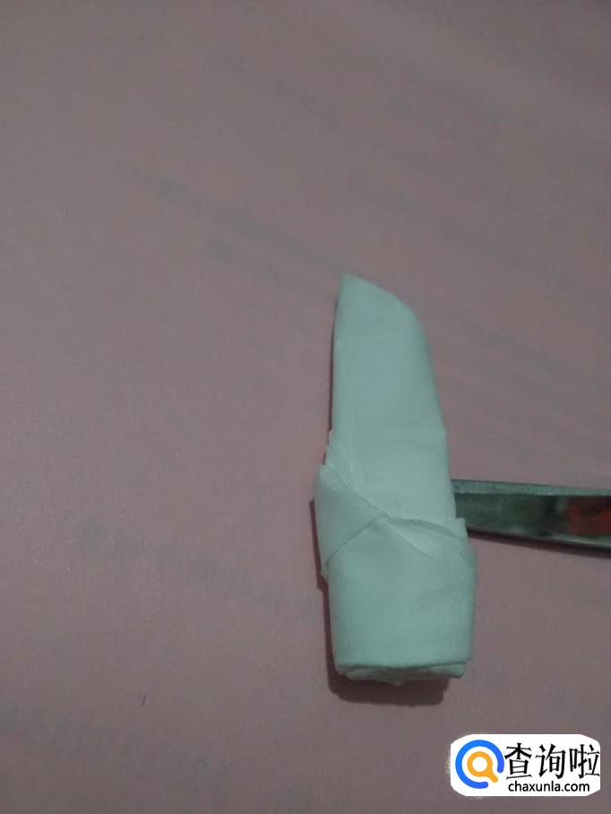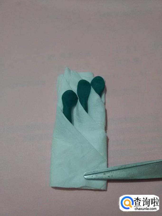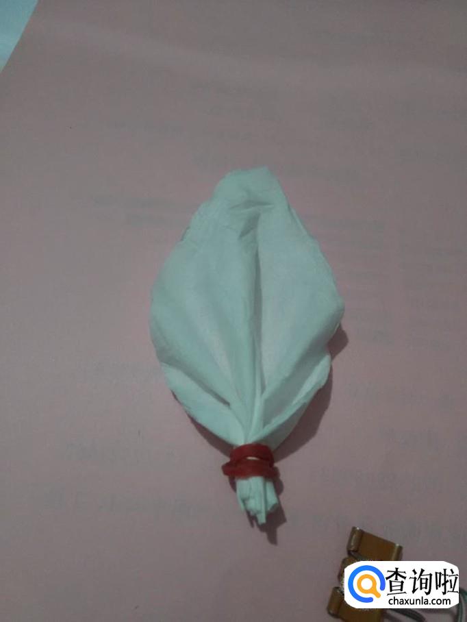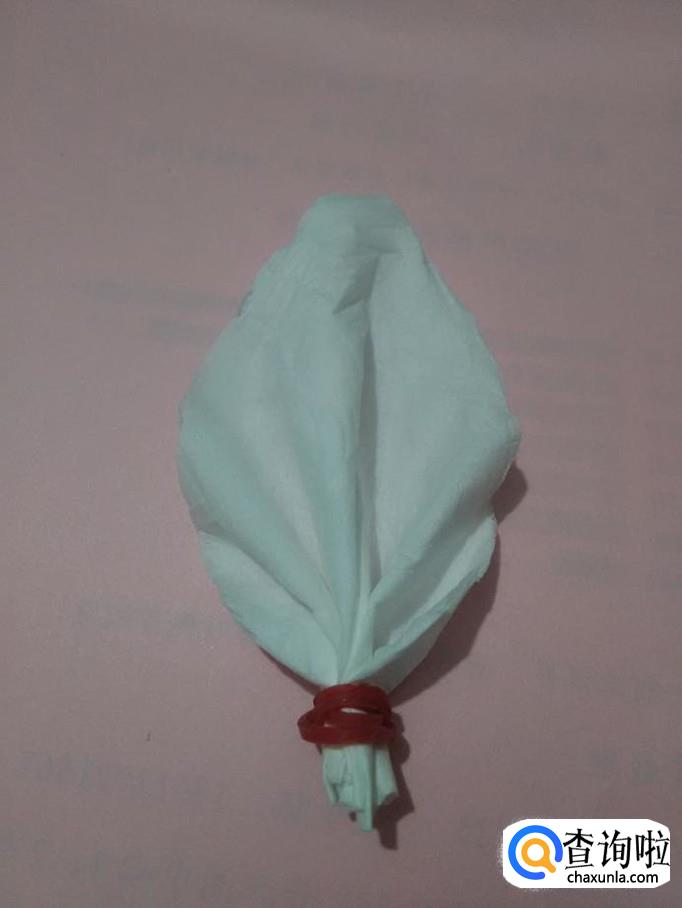 用皮筋将叶子下方缠好,叶子就折好了。