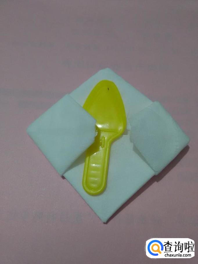 再将小正方形翻过来,在正方形中,左右各有一个小的正方形,可以把餐具放在两个小正方形里面,好看又干净。