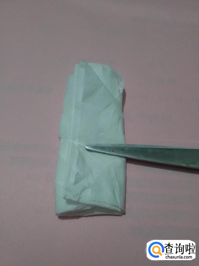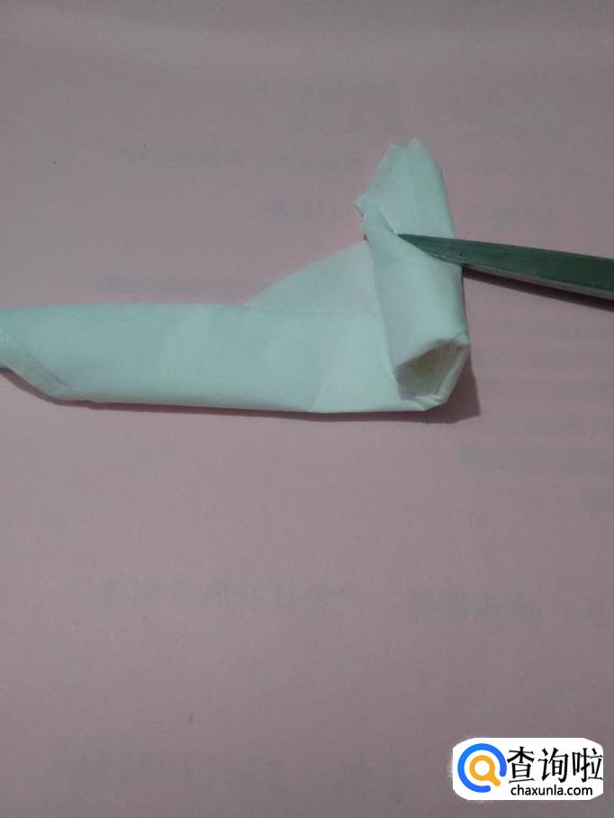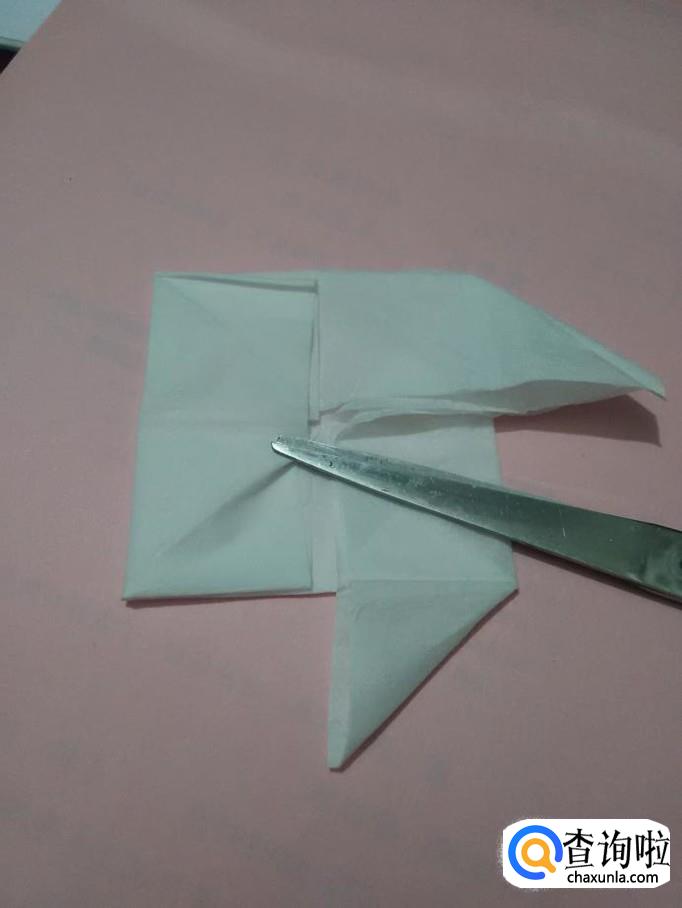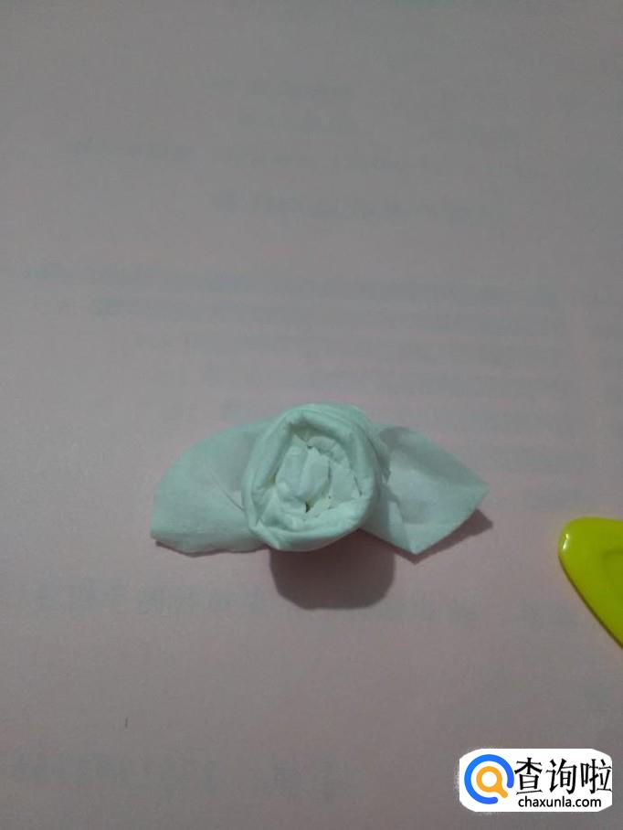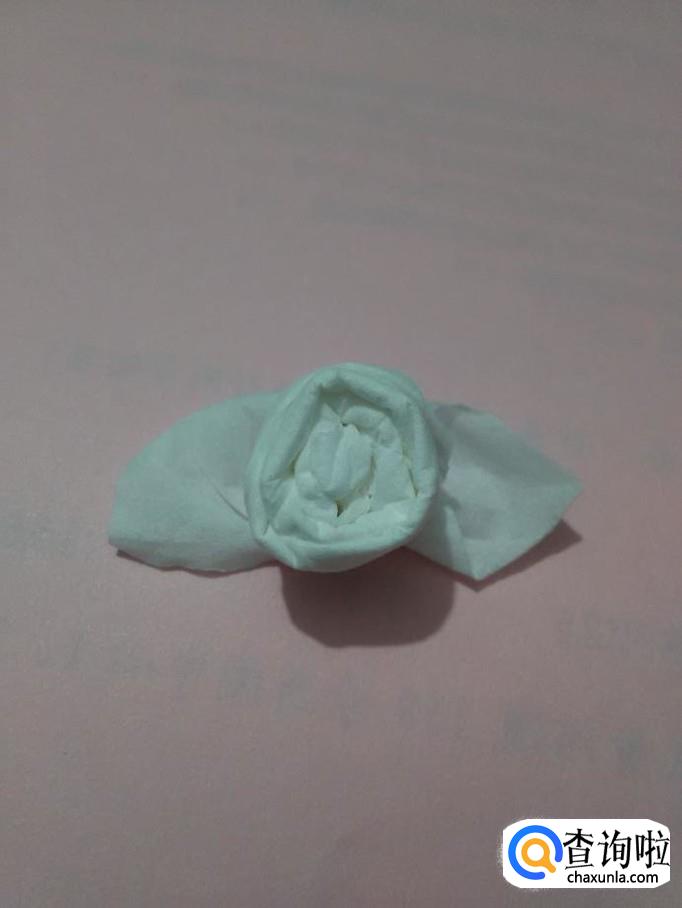 把两个角向左右两边拉平,当作玫瑰花的叶子,一朵玫瑰花就折好了。