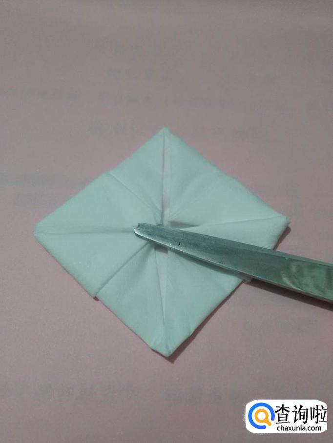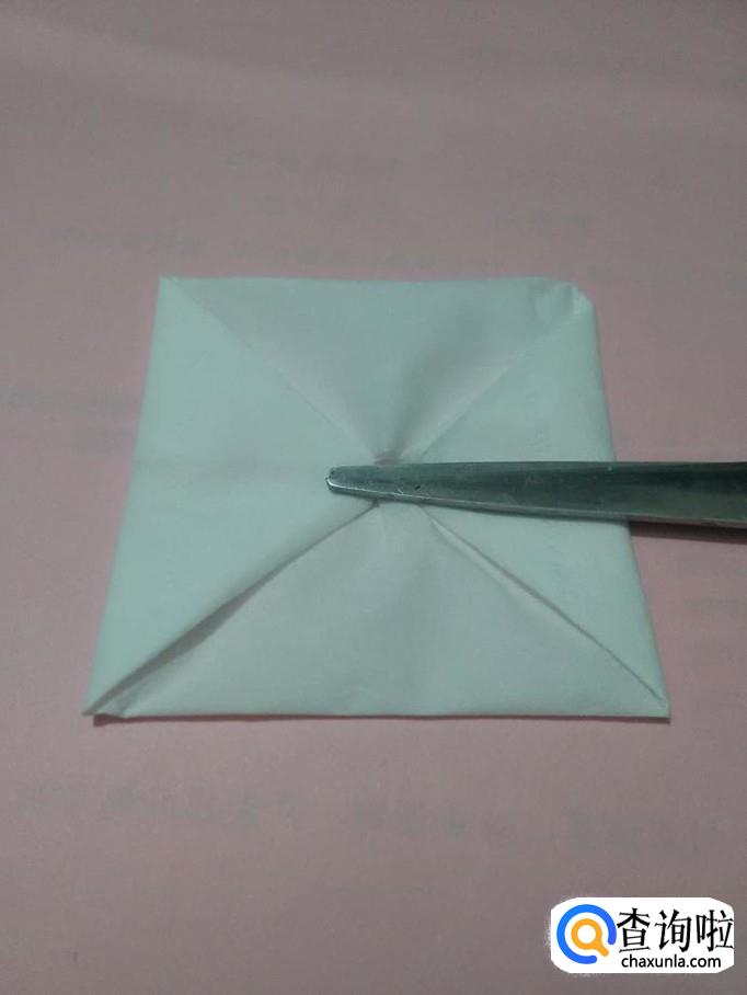 将正方形四个角向中间折,折成一个更小的正方形。