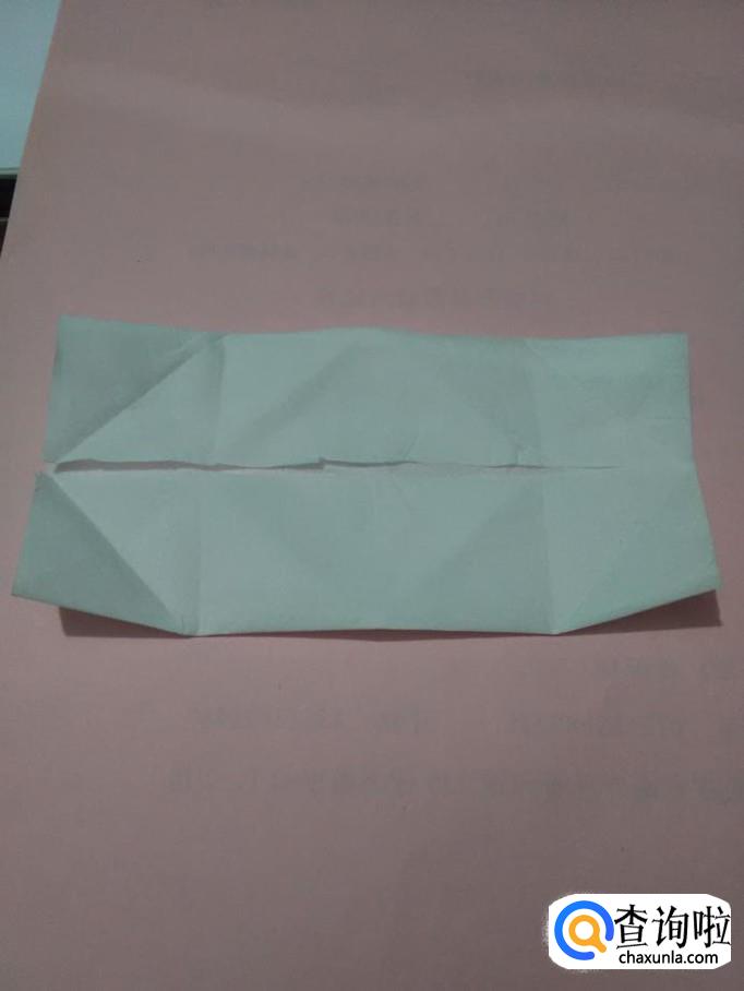 再将长方形的四个角向中间对折,折成两个尖尖的角。