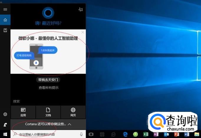 启动Windows 10操作系统,如图所示。点击任务栏搜索框,开始使用Cortana(小娜)智能语音助理。