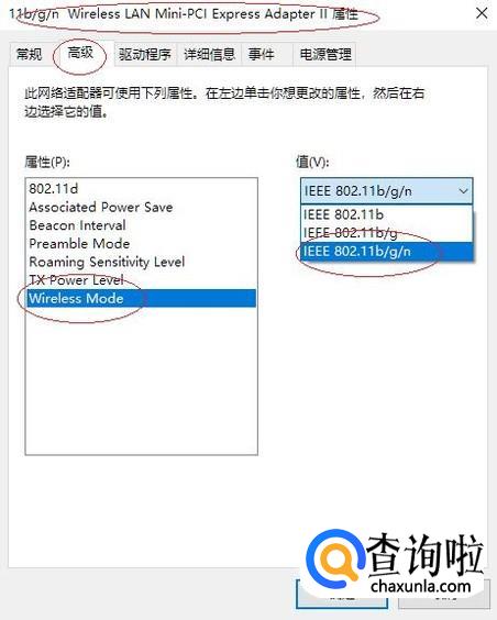 如图所示,点击"高级→Wireless Mode→IEEE 802.11b/g/n"项。完成排除笔记本电脑连接无线很慢的故障,本例到此希望对大家能有所帮助。