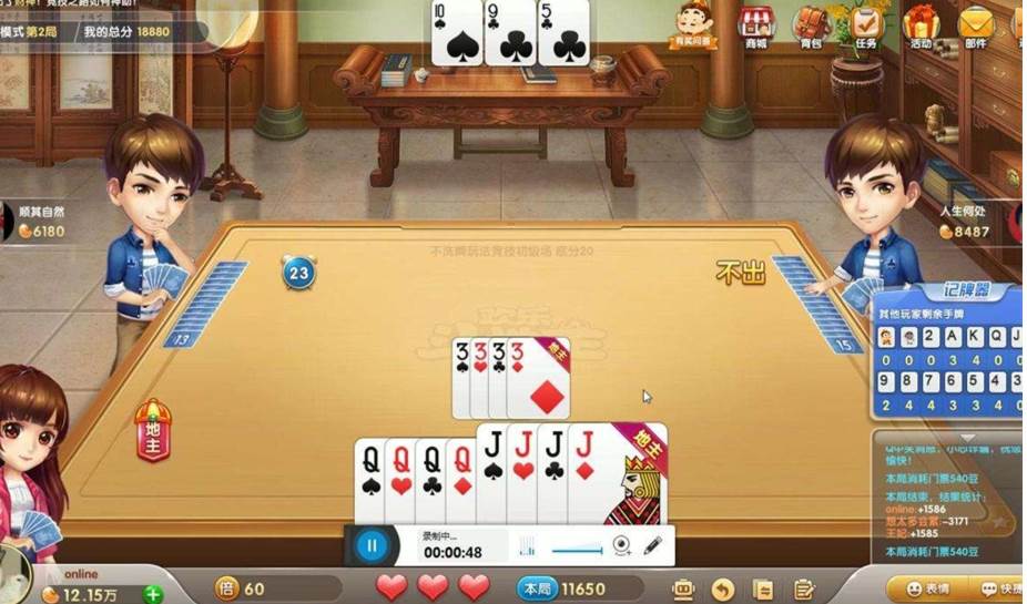 3.、地主首发单张的话,地主上家第一张顶的就是一张A。这张A堪称最经典的顶牌,立马可以将三人手中大牌的牌型显露出来。