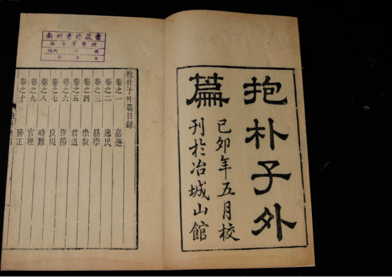 《抱朴子》,晋葛洪撰。以其自号名书。七十卷,其中内篇二十卷,外篇五十卷。内篇论神仙吐纳、符箓克治之术,纯为道教之言;外篇则论时政得失,人事臧否。要皆以黄老为宗,世以为道书之一。然以其洽闻,征引繁富,亦略有神话传说资料。《抱朴子外篇》内容可具体概括为:论人间得失,讥刺世俗,讲治民之法; 评世事臧否,主张藏器待时,克己思君; 论谏君主任贤能,爱民节欲,独掌柄;论超俗出世,修身著书等。