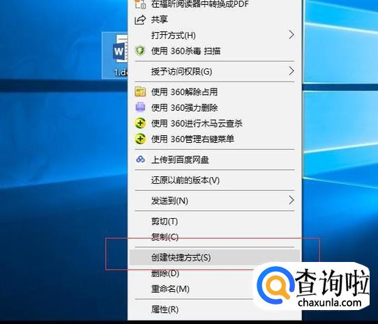 找到你要创建快捷方法的文件,点击右键,选择创建快捷方式,如图。