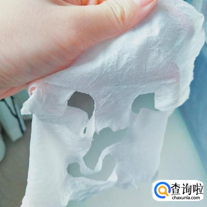将充分吸收了化妆水的面膜纸展开,敷在脸上,用手指轻轻按压,让面膜纸更服帖。