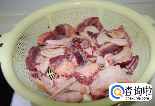 首先把鸭子清洗干净,然后斩成一块块,蒜米、姜丝、小米辣准备好。