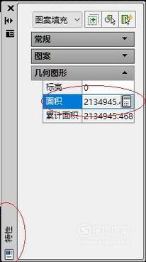 弹出特性面板,点击"几何图形→面积"右侧计算器图标。