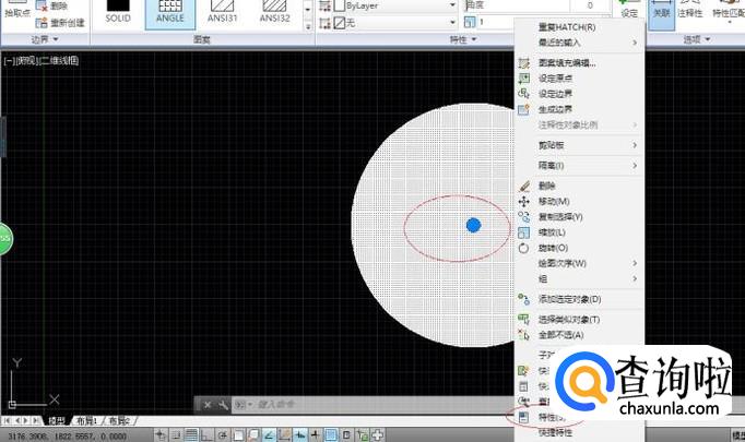 鼠标右击填充的图案,弹出快捷菜单选择"特性"项。