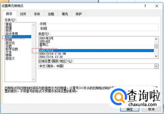 找到数字下面的“日期,”选择“2001/3/14”的格式,见下图