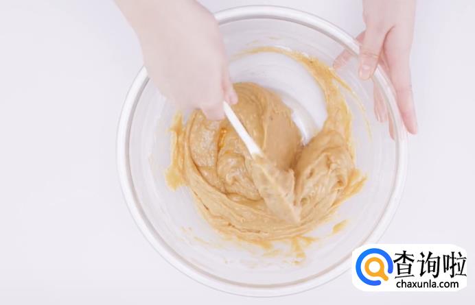 搅拌好之后,将其倒入模具中,然后放进烤箱,温度设置为175度,烤40分钟。