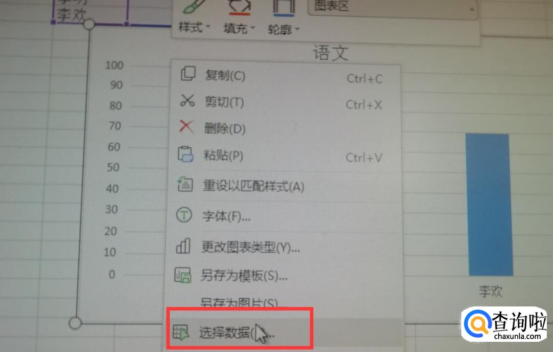 如果想要更清楚的区分,可以右键点击柱状图,点击选择数据。