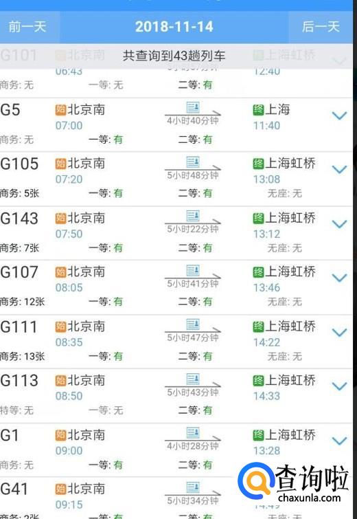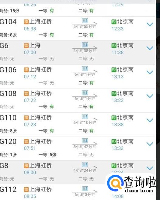 最后一步就是选择返程的班次,例如高铁的一等票、二等票。