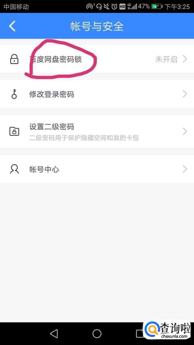 点击百度网盘密码锁,可以看到此时百度网盘密码锁未开启。
