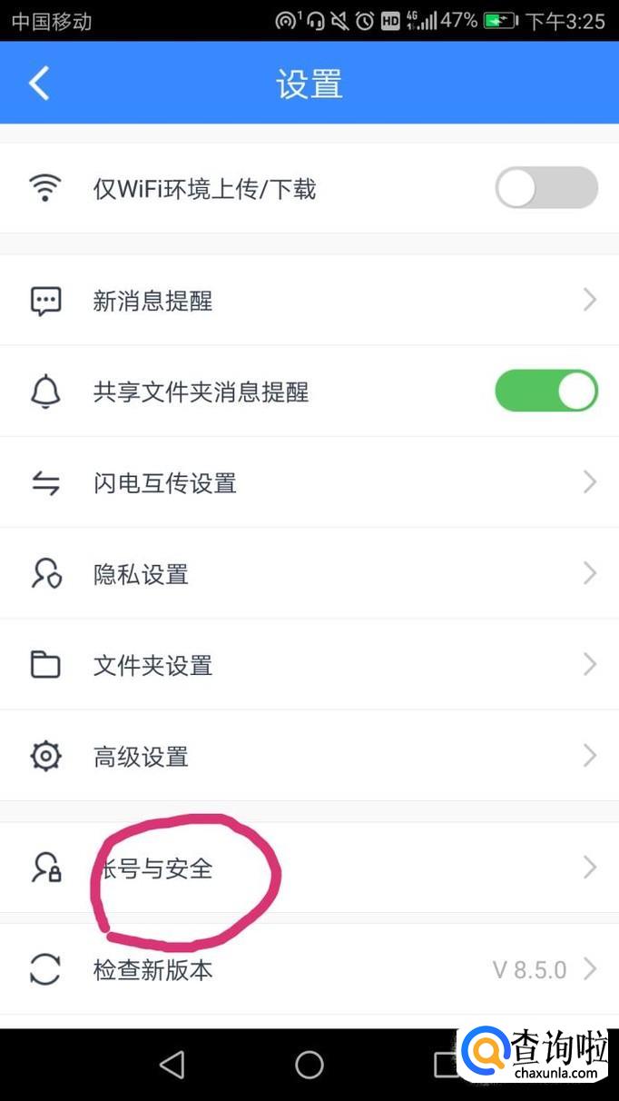 点击设置下的账号与安全按钮,如图。