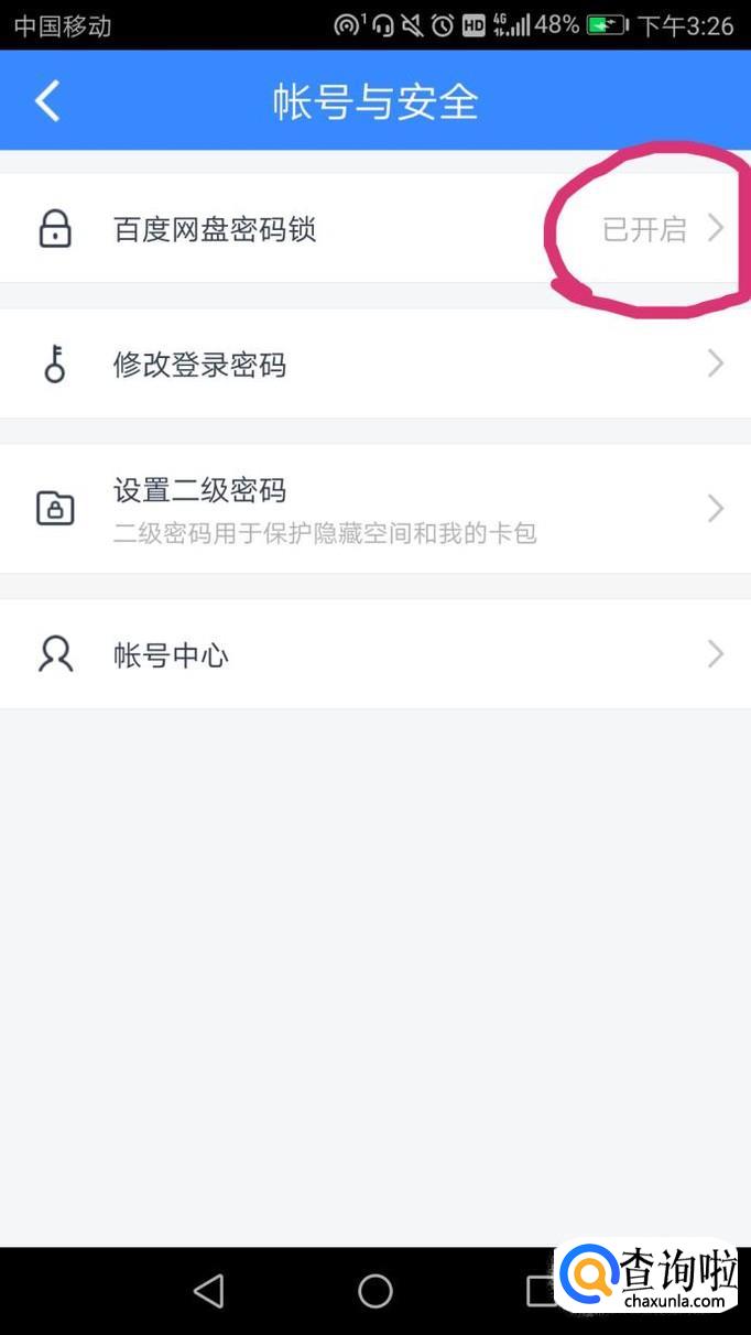 密码输入后退出,在账号与安全界面下可以看到百度网盘密码锁已开启。