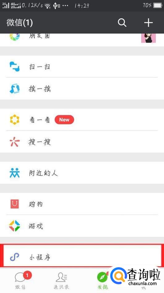 打开新版微信,点击 发现(右下角)——小程序