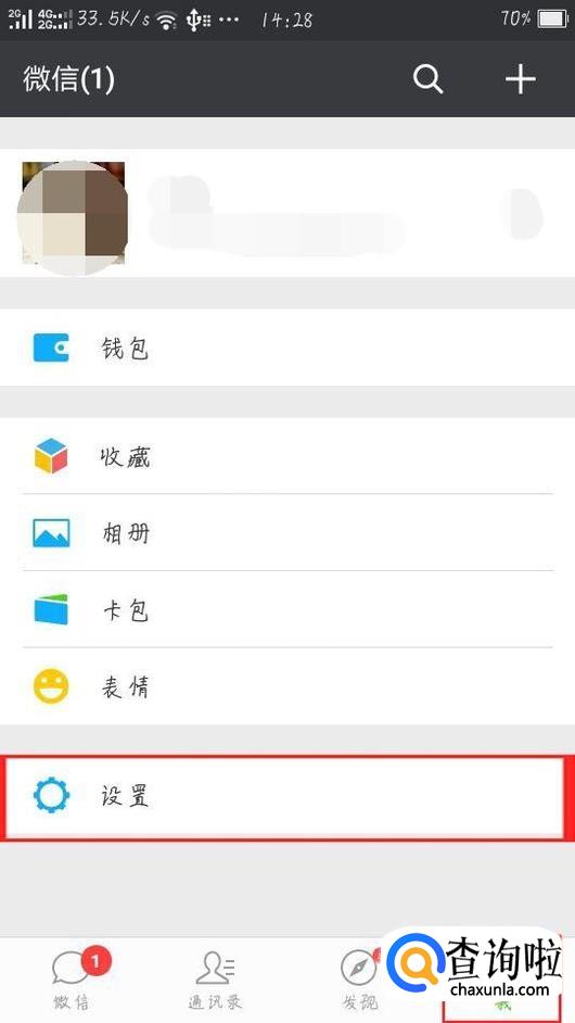 打开微信,点击 我(右下角)——设置