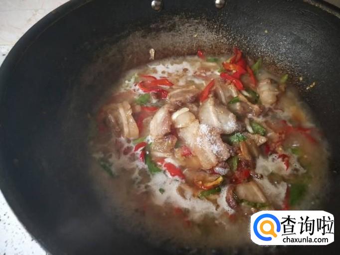 水煮沸之后,翻炒几下之后就能适当加点鸡精,美味的回锅肉制作好了。