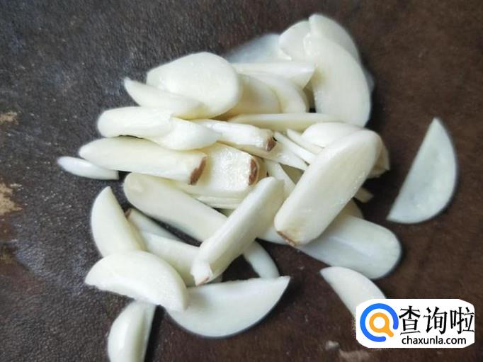 准备好青椒和红椒,切成斜片,然后放在一边备用,大蒜切成一块一块即可。