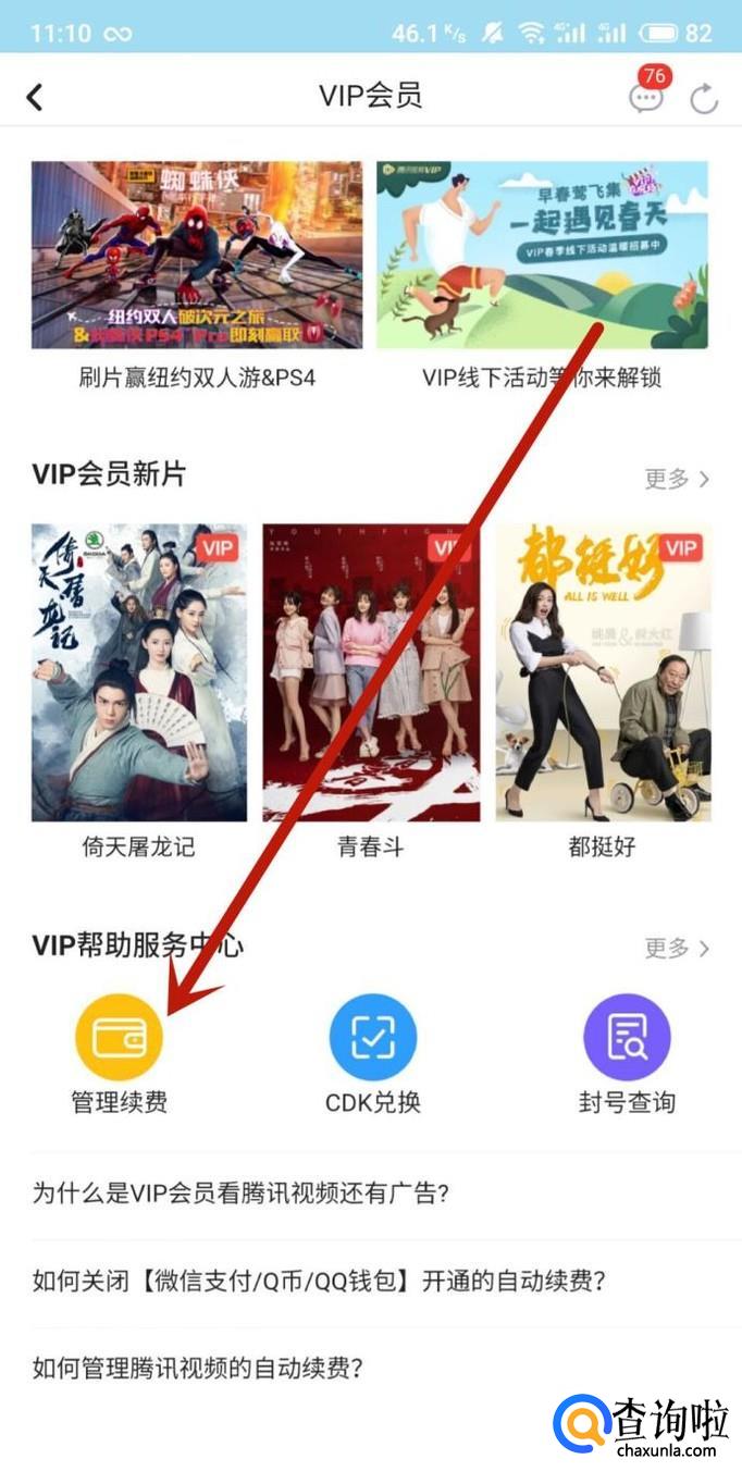 进入之后,找到“管理续费”,点击并进入,如图所示。