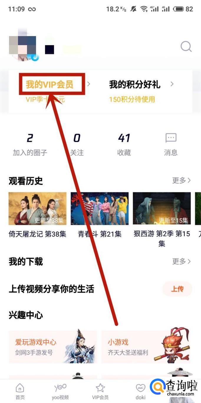 在腾讯视频个人中心页面点击“我的VIP会员”,进入下一页面。