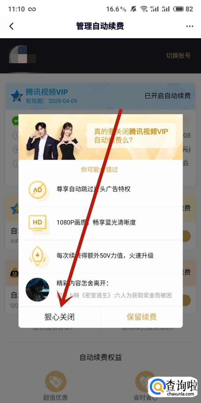 点击之后在出现的弹窗内点击“狠心关闭”即可取消自动续费,如图所示。