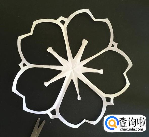 打开剪纸,就可以看到又一朵樱花剪好了。