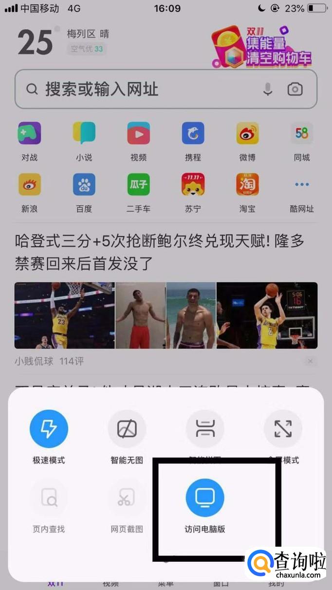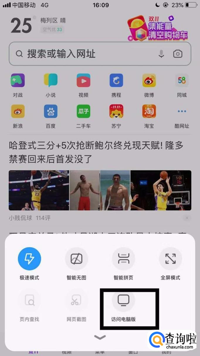 如果你想要让自己的手机浏览器能够浏览电脑网页,可以点击打开允许电脑版开关就可以了。