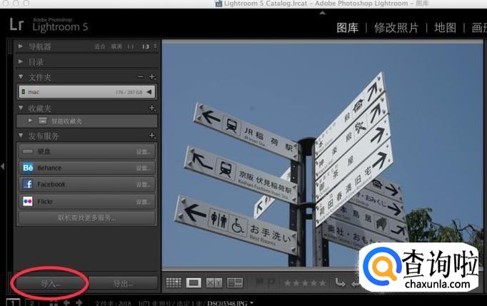 打开图片处理软件lightroom,点击导入,在软件中导入你想要处理的图片。