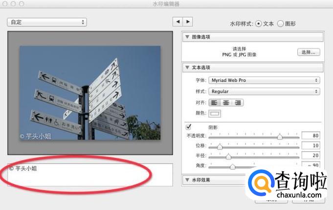 红圈处是水印的文字编辑框,可在此编辑输入你的水印内容。