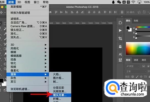 接着开始添加滤镜,选择“滤镜-渲染-镜头光晕”
