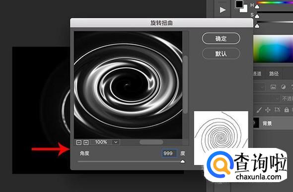 在旋转扭曲设置界面,将角度设置为最大999°,点击“确定”