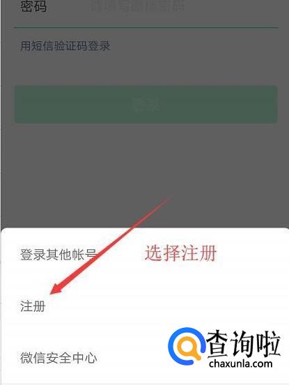 在弹出的界面中选择注册选项,如下图所示