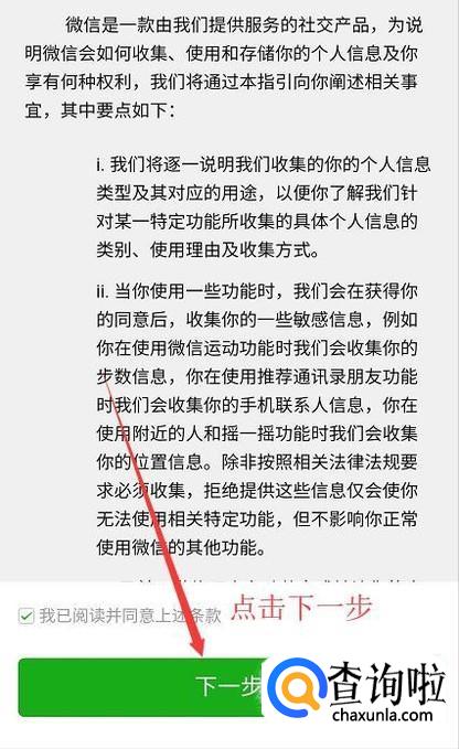 接着会进入到注册协议界面,我们勾选底部的复选框,点击下一步按钮