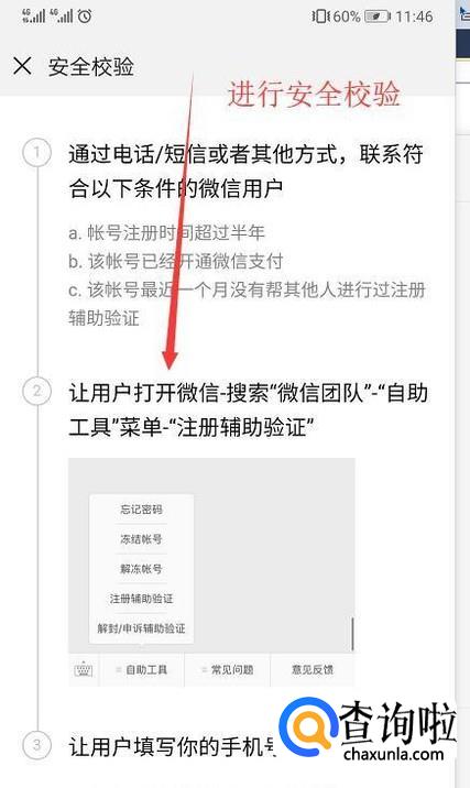 接着需要找好友进行注册手机号的辅助验证,按照下图的步骤操作即可